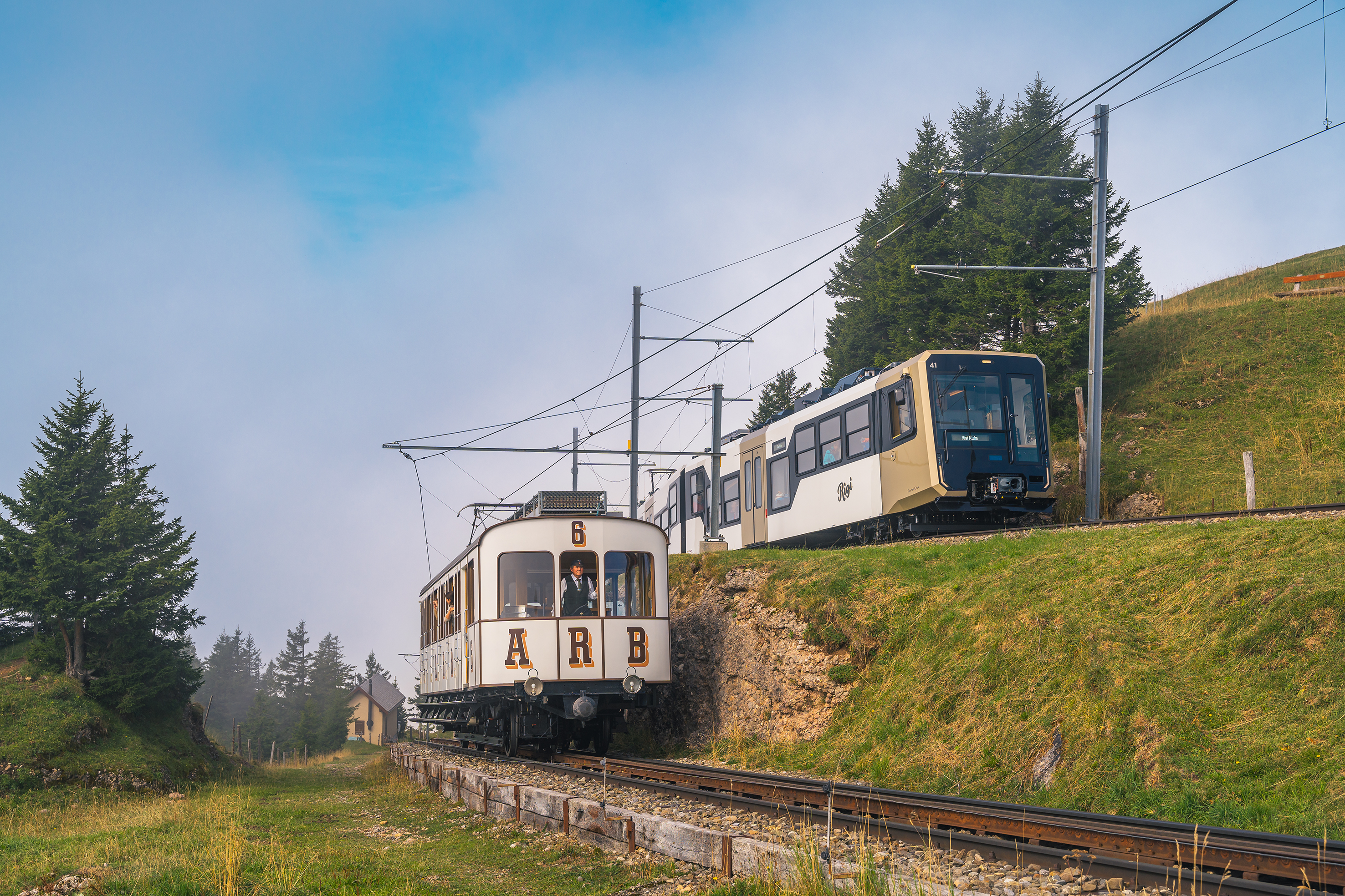 Wir sind zwar die erste Bergbahn Europas, haben aber auch die neuste Zuggeneration im Einsatz. Geschätzter Fahrgast: Gerne nehmen wir Sie mit auf eine Zeitreise. Steigen Sie in Arth-Goldau in ein historisches Fahrzeug ein und reisen Sie ab Rigi Kulm mit dem neusten Gelenktriebwagen zurück ins Tal nach Vitznau.