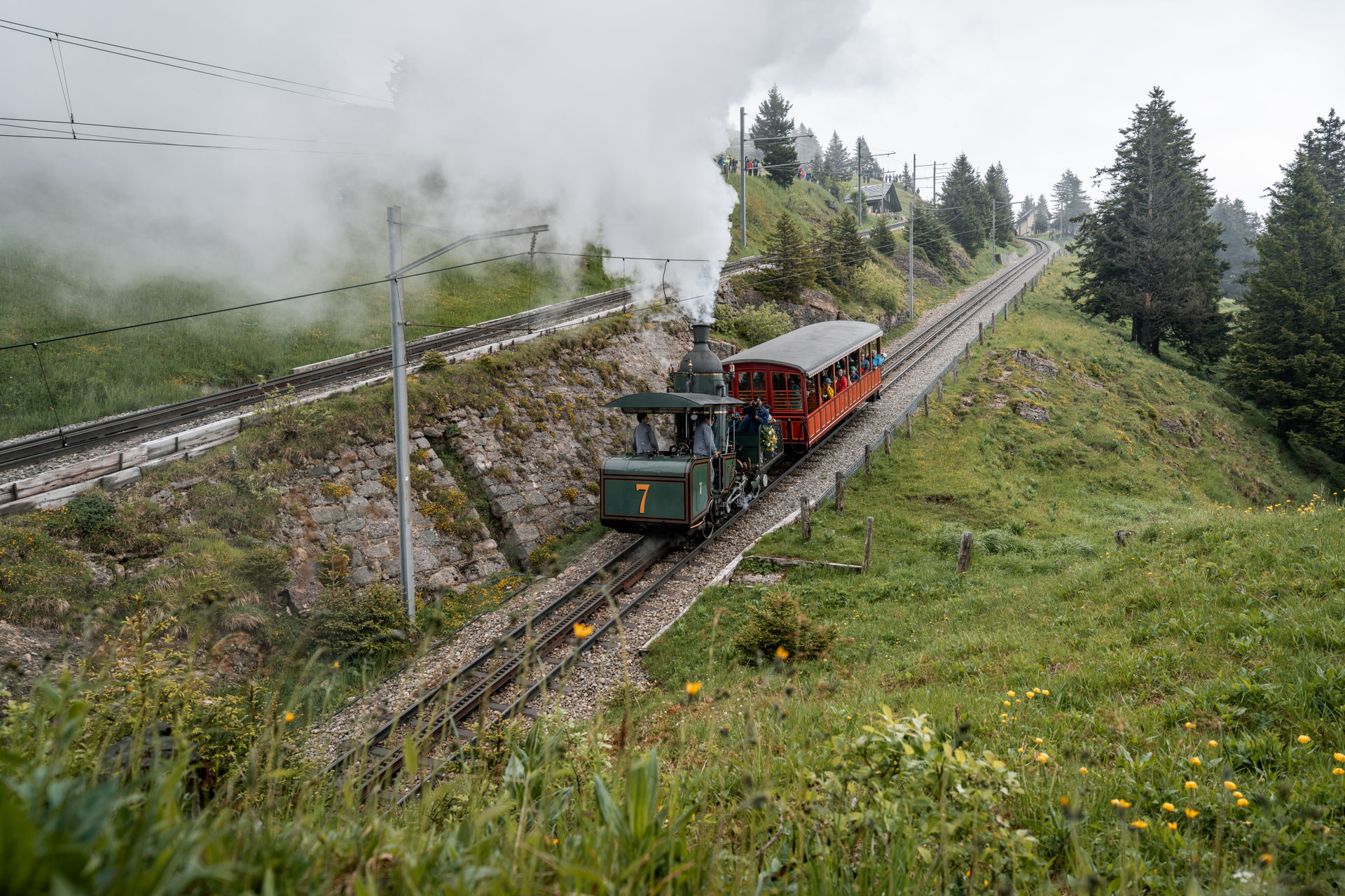 Historic mountain journey in locomotive 7 from Goldau to Rigi Kulm