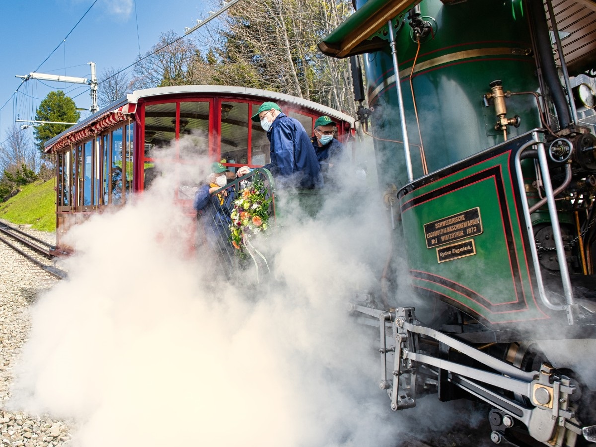 Experience a unique journey from Goldau to the Rigi on the world's only mobile cogwheel steam locomotive with a vertical boiler. The historic locomotive 7 from the pioneering days of mountain railways is only put into service a few days a year – a rare opportunity for an impressive journey into the past, accompanied by steam, technology, and impressive mountain scenery.
