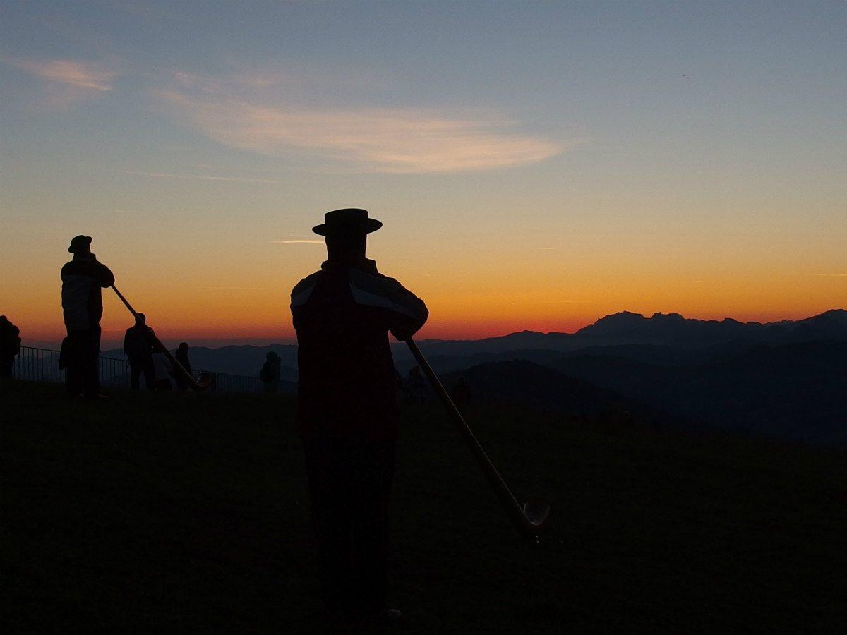 Experience the early morning hours on the queen of the mountains and listen to moving alphorn sounds in the midst of peaceful nature.