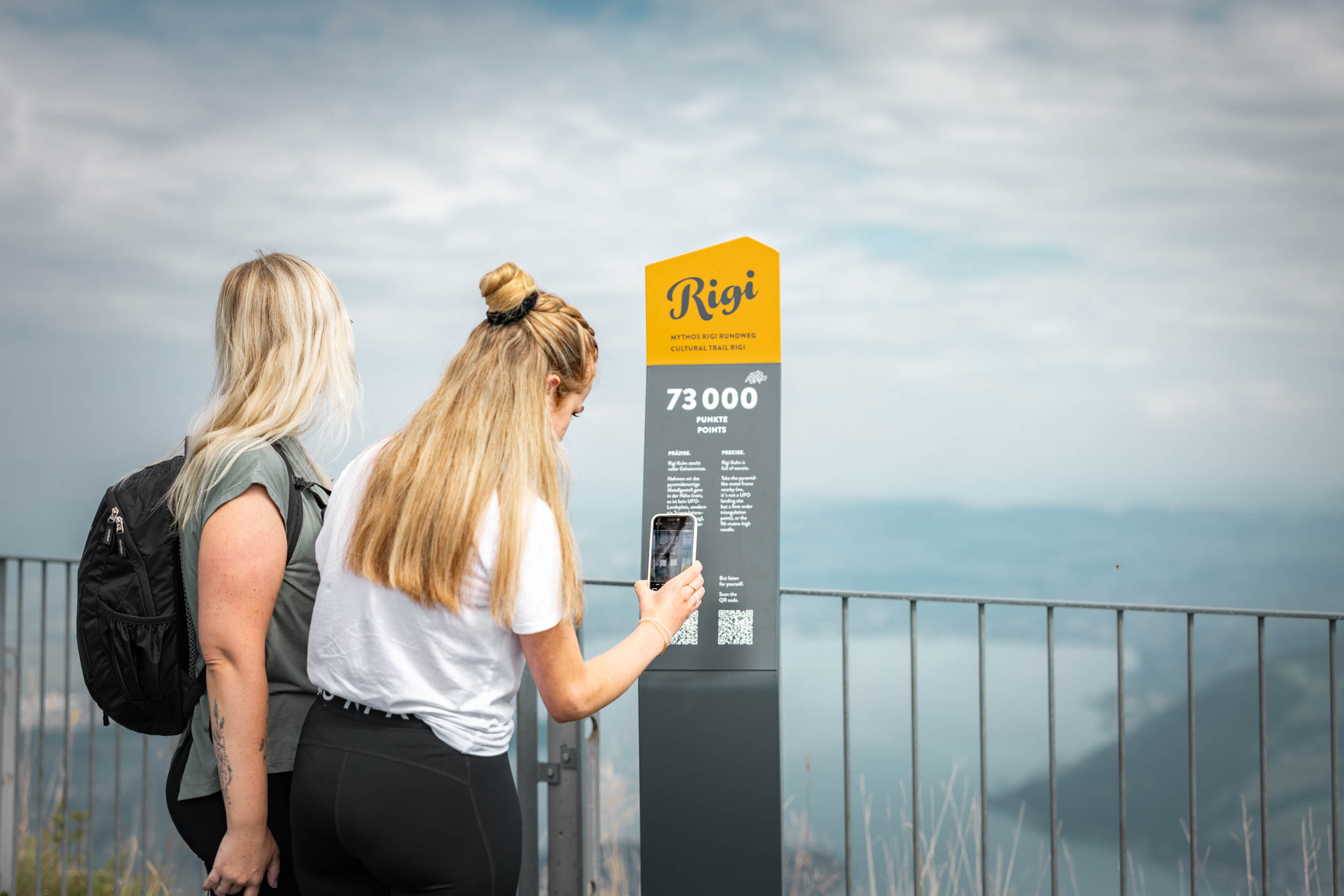 Begegnen Sie 25 Millionen Jahre alten Riginen, betrufenden Älplern, einem rätselhaften Triangulationspunkt, dem wogenden Nebelmeer oder einer aquarellierenden Königin. Wir laden Sie ein, den Mythos Rigi per Audiofiles auf dem Rundweg vor Ort zu ergründen.